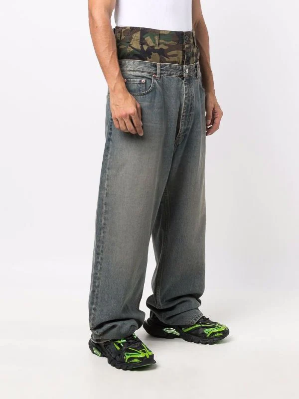 Effet superposé, imprimé camouflage, taille haute, passants de ceinture, fermeture à zip et boutons sur le devant, cinq poches classiques, coupe ample. Matière : coton. Lorsque vous passez commande, veillez à prendre en compte que les mensurations indiquées pour cet article unisexe correspondent à la taille homme.