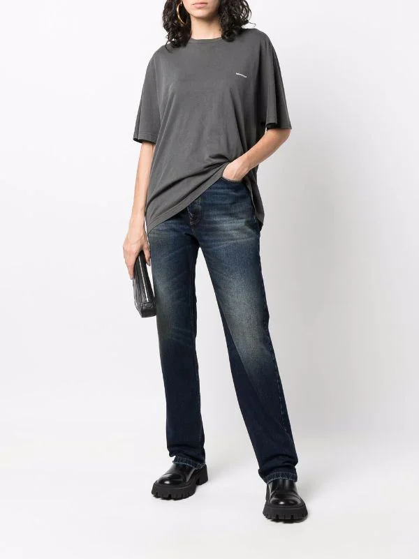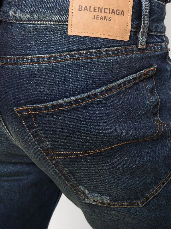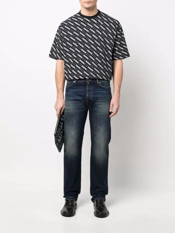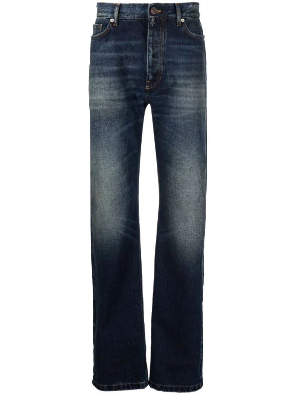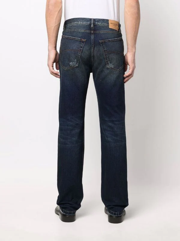 Effet délavé, finitions à effet usé, patch logo sur l’arrière, passants de ceinture, fermeture à zip et boutons sur le devant, coupe droite, cinq poches classiques. Matière : coton.
