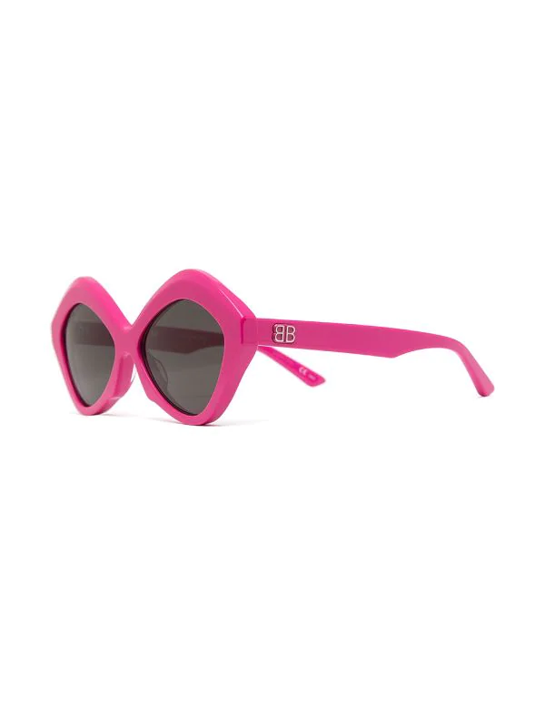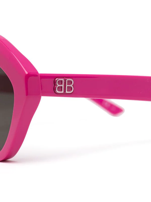 Monture ronde, verres teintés, plaque logo sur la branche. Couleur : rose.