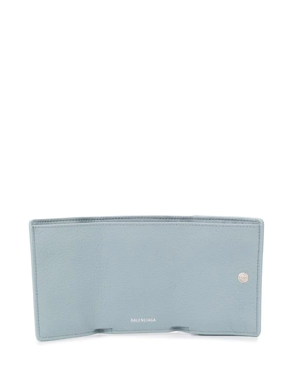 Mini portefeuille Papier en cuir Balenciaga avec logo imprimé sur le devant, boutons pression, poche ticket, compartiment à billets et logo intérieur.