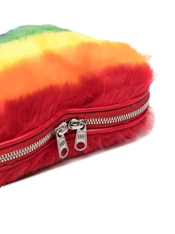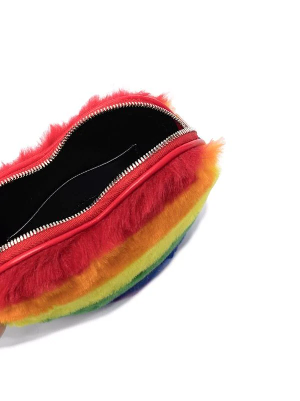 Rayures horizontales, fini texturé, fermeture zippée sur le dessus, bride porté épaule détachable et ajustable, poche intérieure plaquée. Couleur : multicolore. Matière : fourrure artificielle.