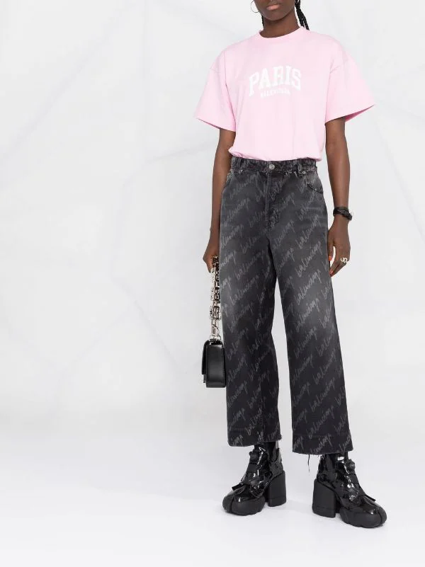 Imprimé monogrammé, patch logo sur l’arrière, passants de ceinture, coupe ample, coupe courte, fermeture boutonnée, cinq poches classiques.
