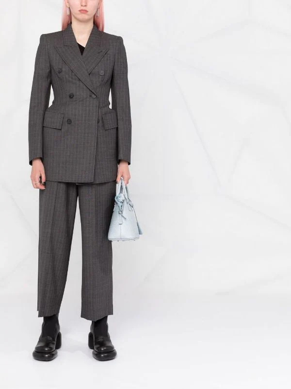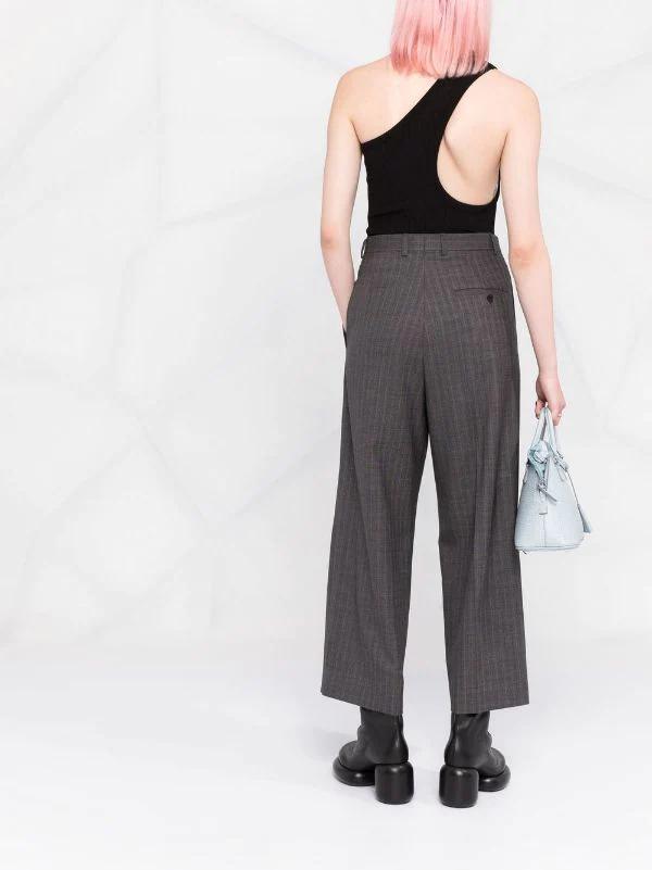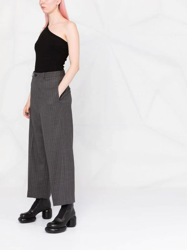 Fines rayures, passants de ceinture, fermeture boutonnée, coupe ample, coupe ajustée, coupe courte. Matière : coton.