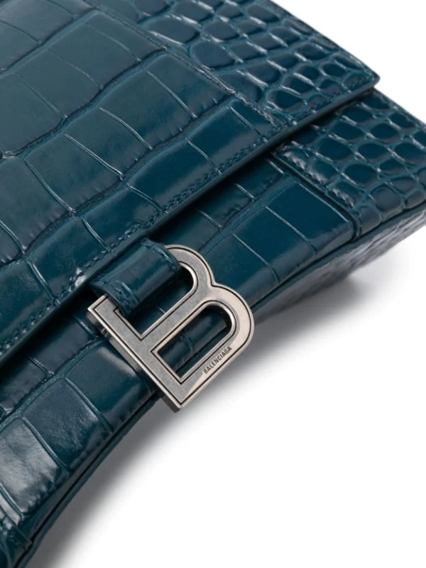 Effet peau de crocodile, finitions en métal argenté, plaque logo, anse classique, bride porté épaule ajustable, rabat sur le devant, fermeture magnétique, compartiment principal, poche intérieure zippée. Matière : cuir.