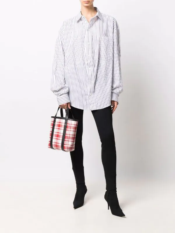 Carreaux, fermeture magnétique dissimulée, anses arrondies, poche intérieure zippée. Matière : cuir.