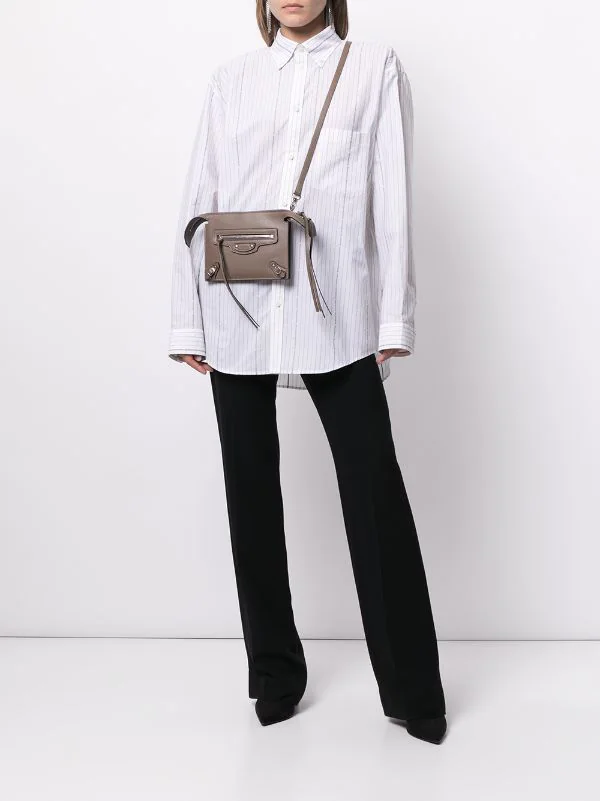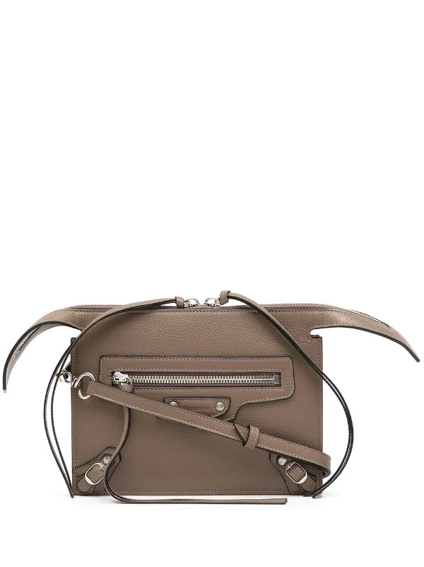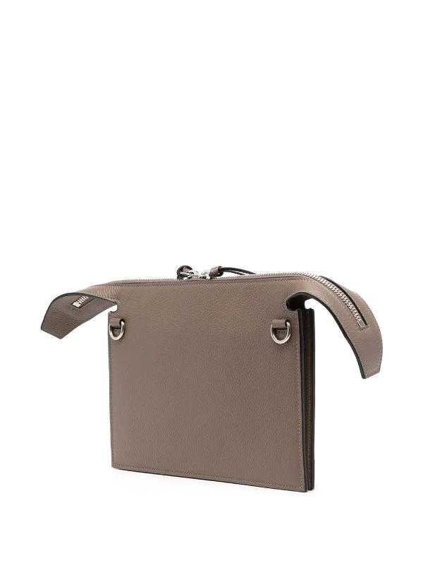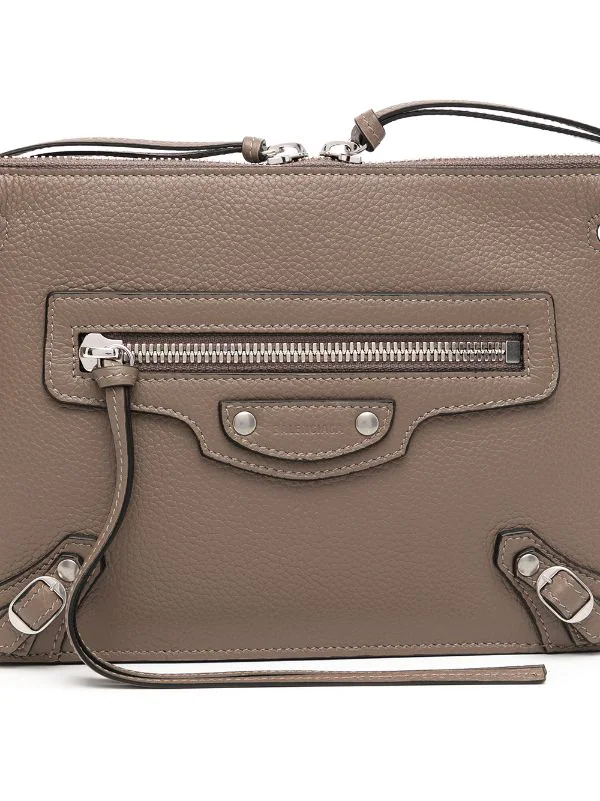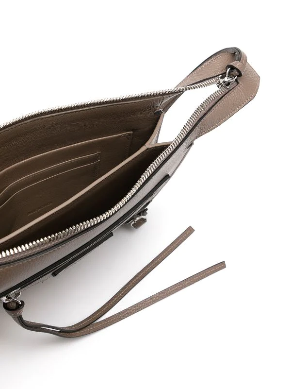 Bride porté épaule détachable et ajustable, texture grainée, poche zippée sur le devant, logo embossé sur le devant, ornements argentés, fermeture zippée à double sens. Couleur : marron. Matière : cuir.