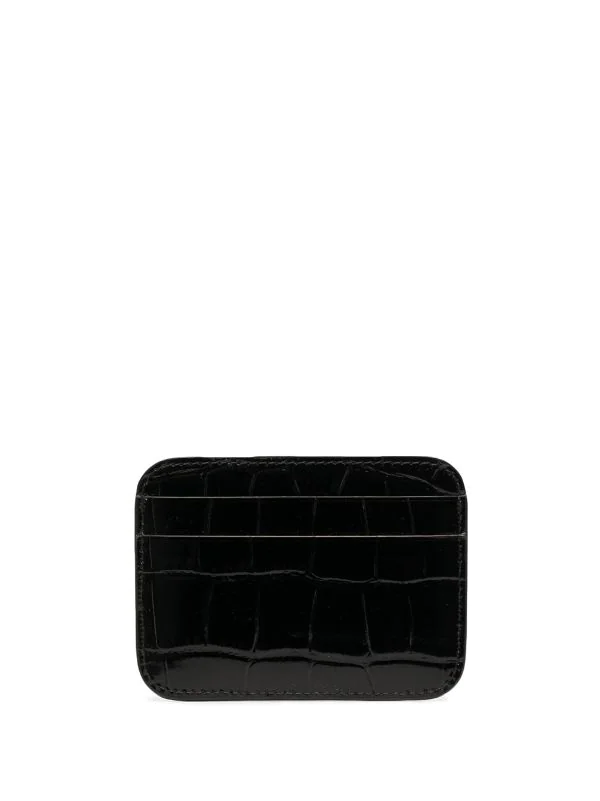 Logo imprimé sur le devant, effet peau de crocodile, fentes pour carte. Couleur : noir. Matière : cuir.