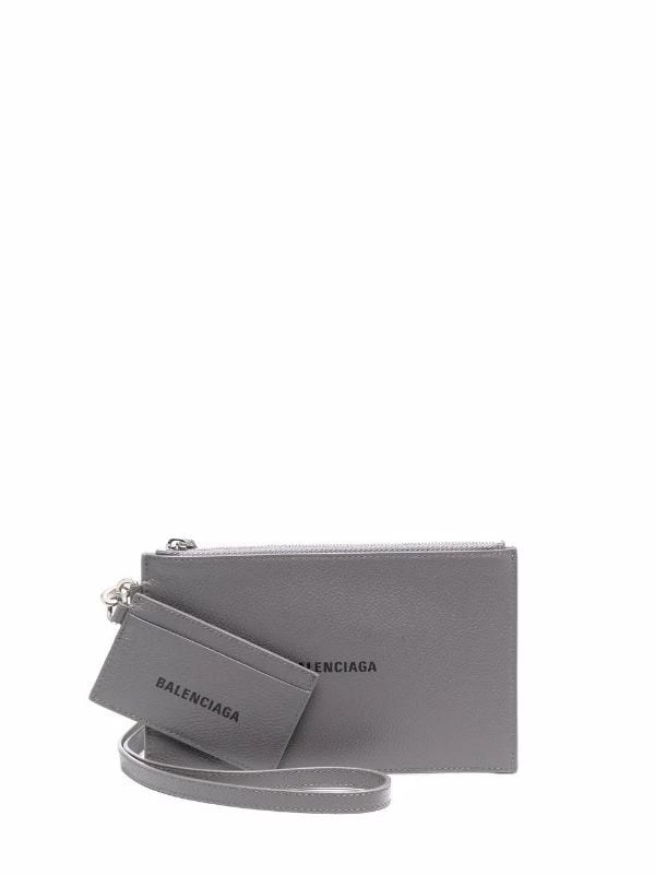 Texture grainée, logo imprimé sur le devant, fermeture zippée sur le dessus, pochette détachable, bride porté autour du cou détachable. Couleur : gris. Matière : cuir.