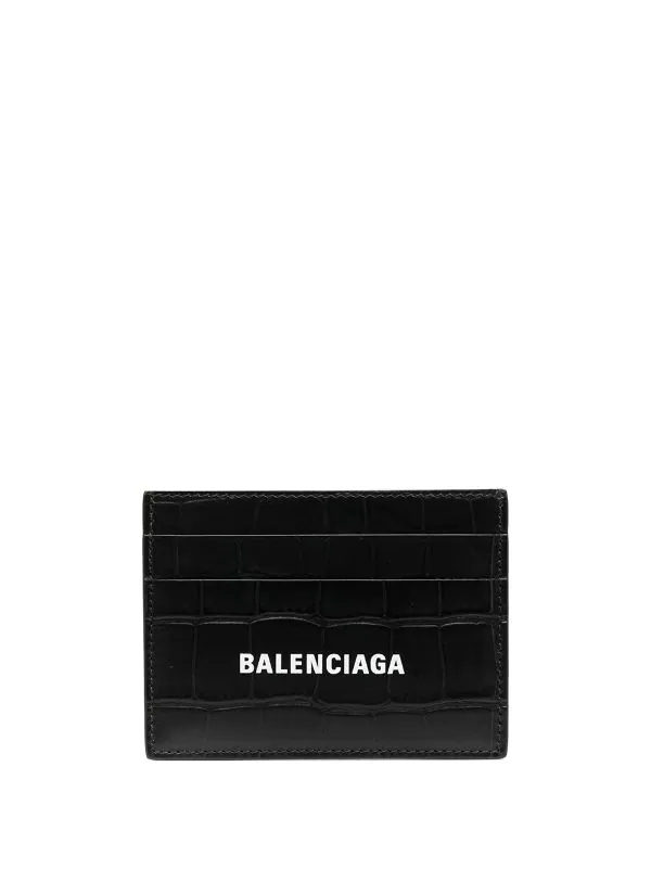 Effet peau de crocodile, logo imprimé sur le devant, fentes pour carte. Couleur : noir. Matière : cuir.