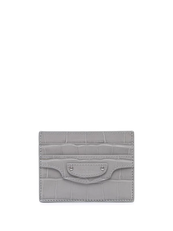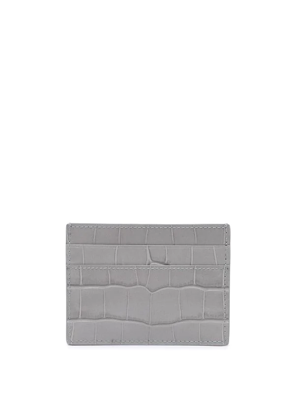Effet peau de crocodile, logo embossé, fentes pour carte, fentes pour carte intérieures. Couleur : gris. Matière : cuir.