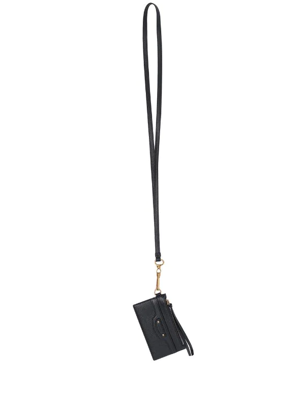 Finitions en métal doré, fermeture à loquet, fermeture zippée sur le dessus, bride porté autour du cou détachable. Couleur : noir. Matière : cuir.