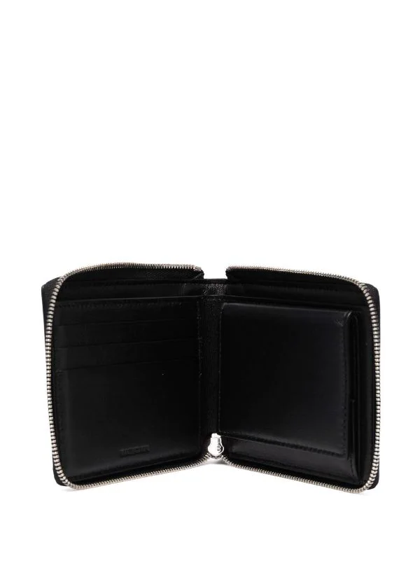 Logo imprimé sur le devant, fermeture zippée tout autour, compartiments intérieurs pour carte, compartiment à billets intérieur, poche ticket, doublure en cuir.