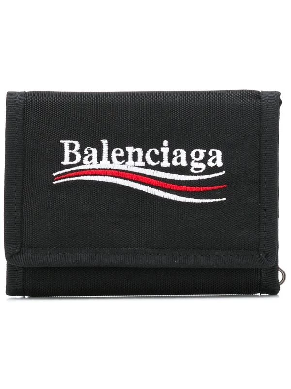 Portefeuille Explorer noir Balenciaga avec quatre fentes pour cartes et porte-monnaie à fermeture zippée.