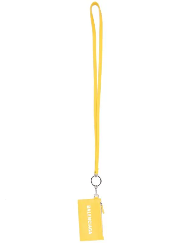 Logo imprimé sur le devant, fentes pour carte, bride porté autour du cou détachable, poche ticket, finitions en métal argenté. Couleur : jaune. Matière : cuir.