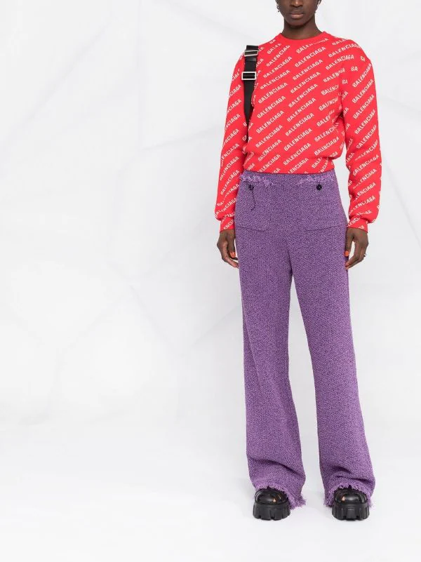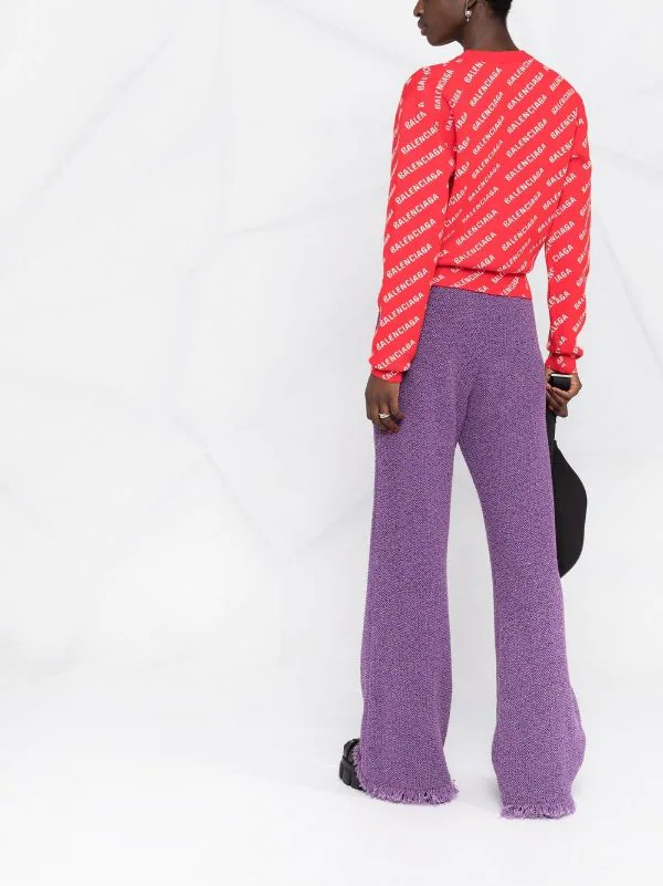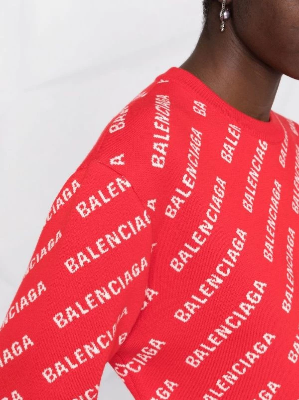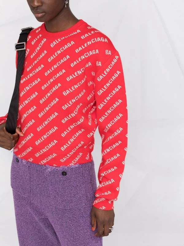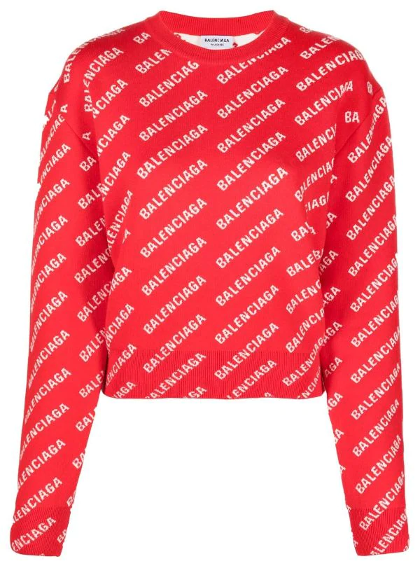 Rouge sang, coton mélangé, jacquard à motif logo, encolure ronde, manches longues, ourlet droit.