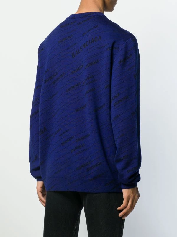Pull à logo Balenciaga avec encolure ras du cou, manches longues et ourlet et poignets nervurés. Couleur : bleu.