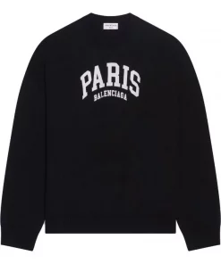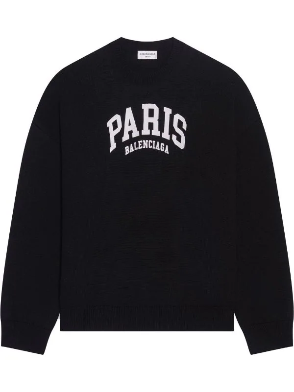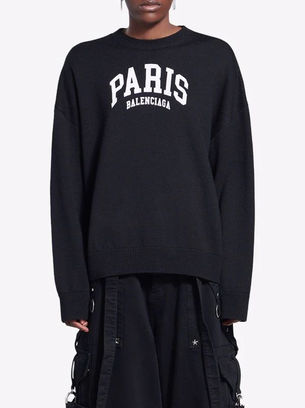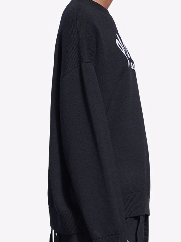 Détail de logo, bord en maille côtelée, design en maille, encolure ronde, épaules tombantes, manches longues, ourlet droit. Matière : coton.