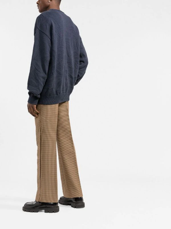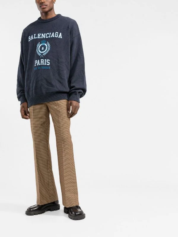 Bleu marine, blanc, coton mélangé, design en maille, encolure ras du cou, logo imprimé sur le devant, manches longues, ourlet nervuré, poignets nervurés, épaules tombantes.