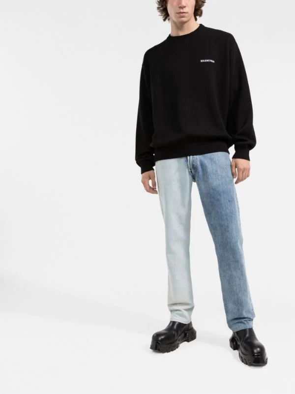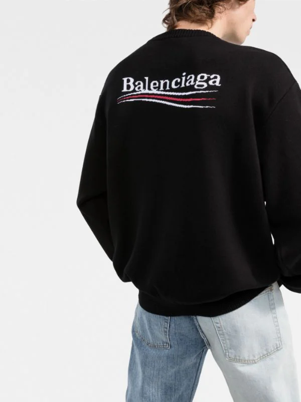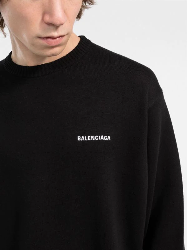 Logo intarsia, encolure ras du cou, manches longues, ourlet nervuré. Couleur : noir.