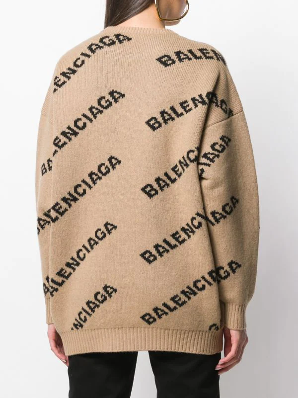 Pull À Motif Monogrammé Balenciaga avec encolure ronde, manches longues, effet d’épaules descendues, ourlet et poignets nervurés et tricot intarsia.
