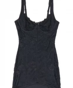 Encolure cœur, bretelles fines, construction stretch, design en jacquard, ourlet incurvé. Couleur : noir.
