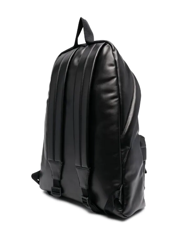 Design matelassé, logo argenté, anse arrondie, élastiques ajustables au niveau des oreilles. Couleur : noir. Matière : cuir.