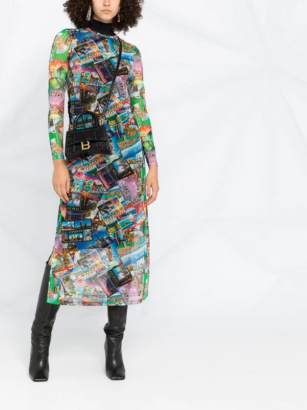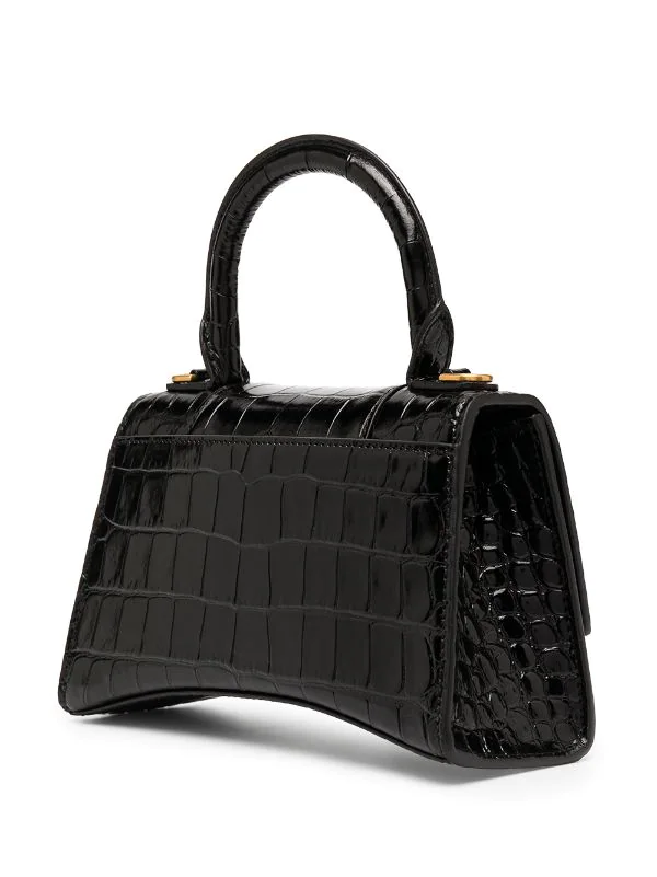 Défini par un base incurvée et une silhouette structurée, ce sac à main Hourglass de Balenciaga est conçu avec un effet peau de crocodile. Un logo ‘B’ doré vient souligner l’accessoire.