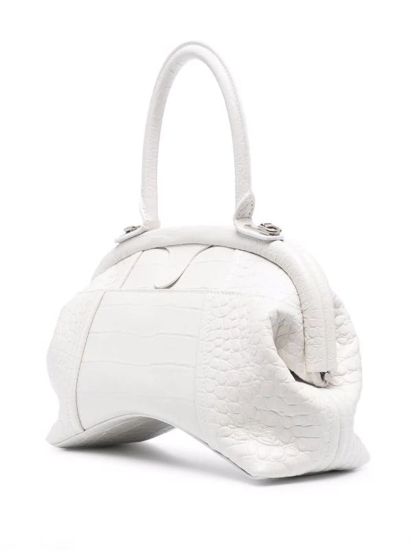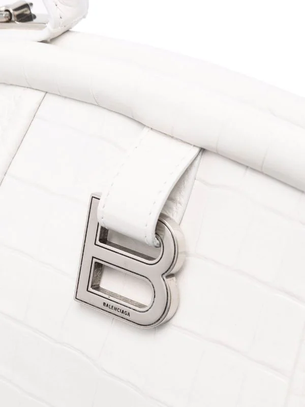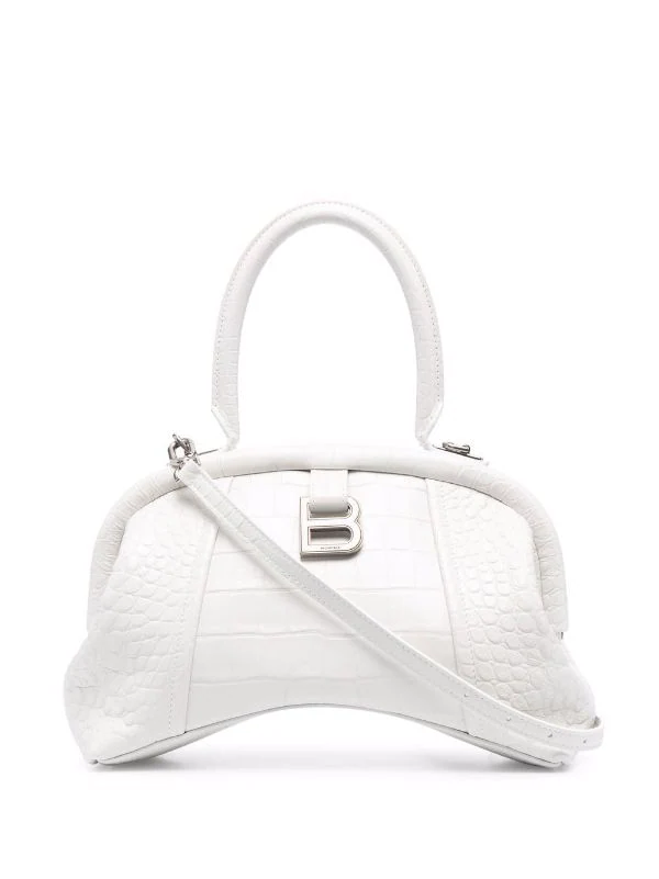 Effet peau de crocodile, plaque logo B signature, anse classique, bride porté épaule détachable et ajustable, poches intérieures zippées, patch logo intérieur. Couleur : blanc. Matière : cuir.