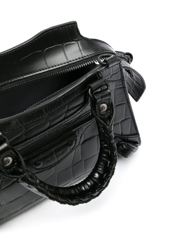 Effet peau de crocodile, logo embossé, finitions en palladium, fermeture zippée sur le dessus, anses sur le dessus, compartiment principal, poche zippée sur le devant. Couleur : Noir. Matière : cuir.