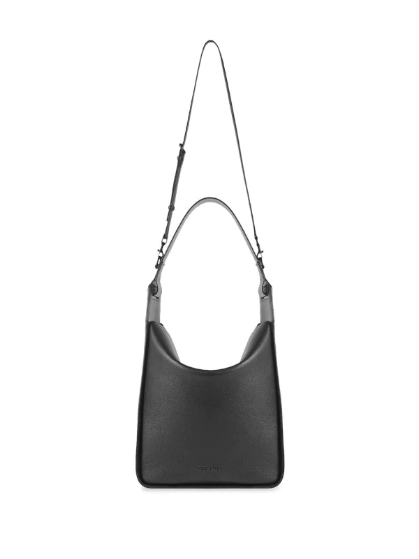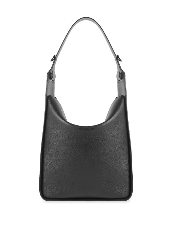 Anse classique, bride porté épaule détachable et ajustable, rabat sur le dessus, compartiment principal, pochette détachable. Couleur : noir. Matière : cuir de veau.