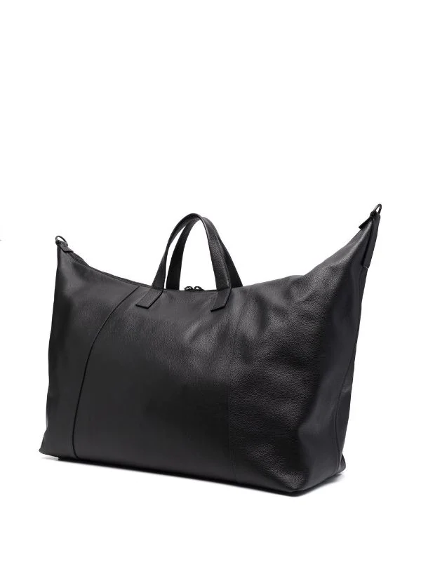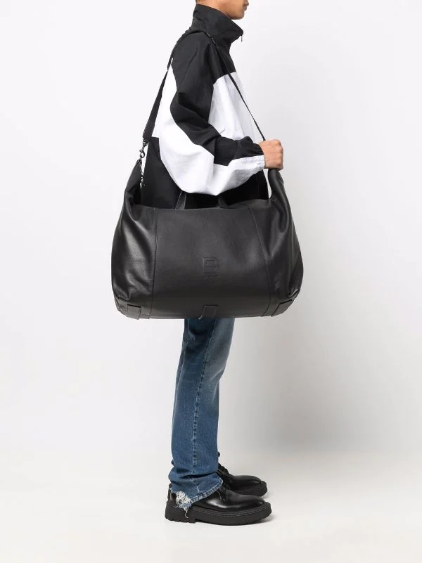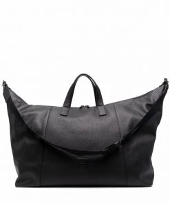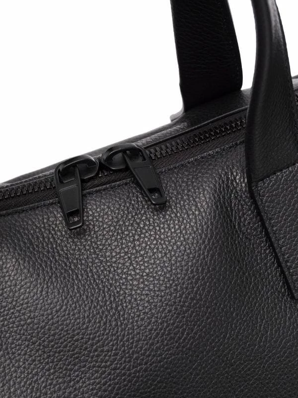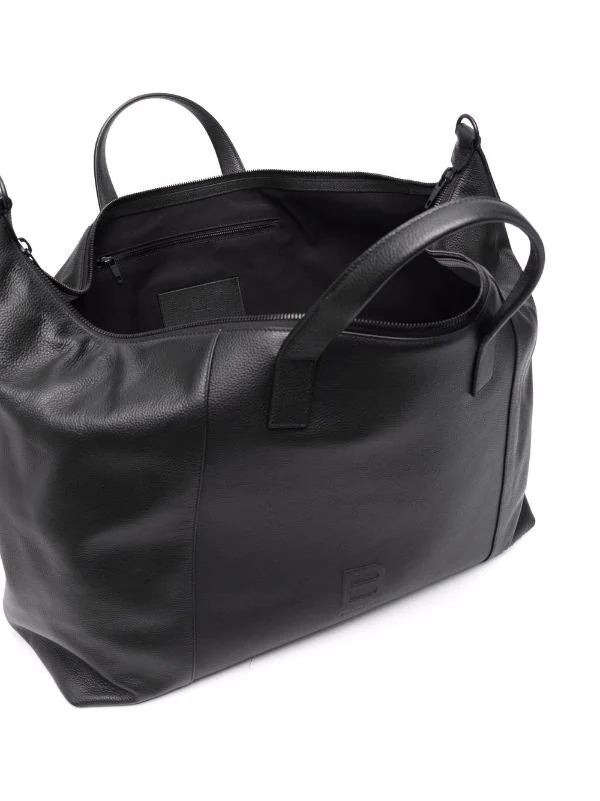 Logo embossé sur le devant, bride porté épaule détachable, anses arrondies, fermeture zippée sur le dessus, patch logo intérieur, poche intérieure zippée. Couleur : noir. Matière : cuir.