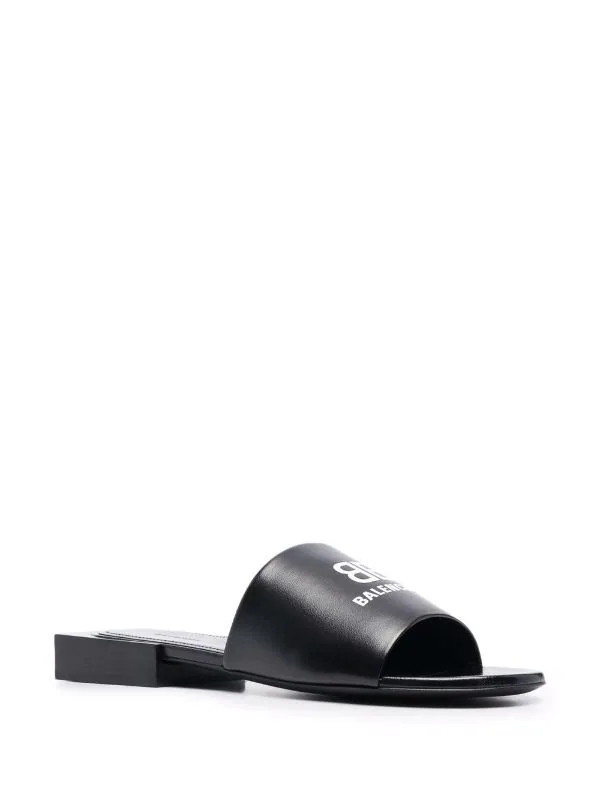 Logo imprimé sur le devant, semelle intérieure griffée, bout rond, semelle en caoutchouc, design à enfiler. Couleur : noir. Matière : cuir.