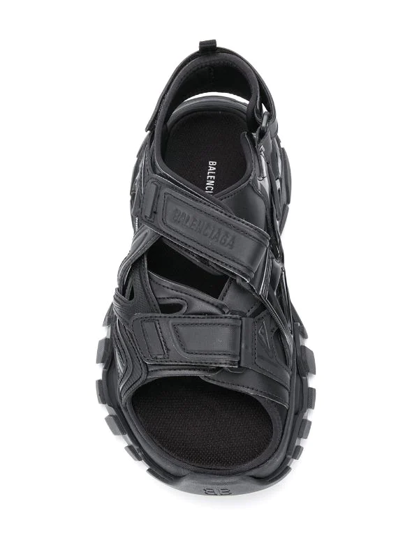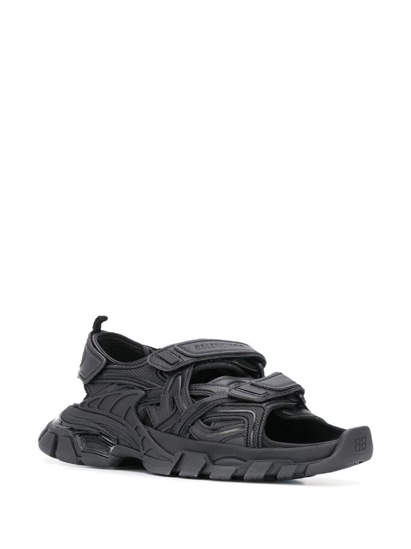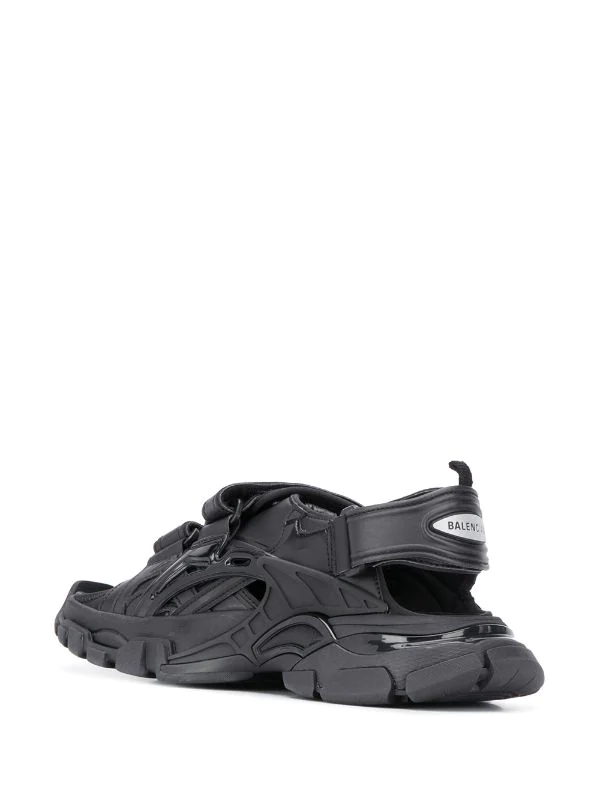 Sandales Track Balenciaga avec bout ouvert, a touch strap fastening, semelle intérieure à logo et semelle plate en caoutchouc. Couleur : noir.