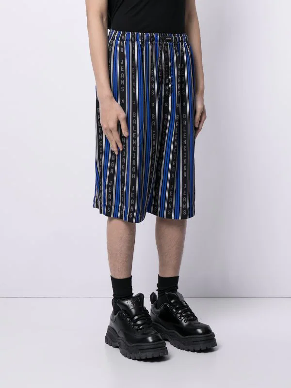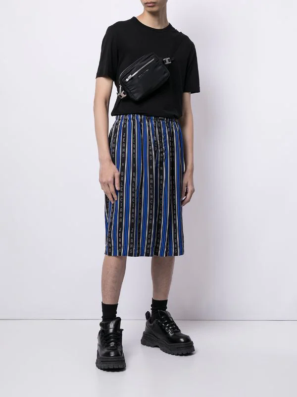 Rayures verticales, finition à bande logo, ceinture élastique, patch logo sur le devant, deux poches latérales fendues, poche arrière plaquée.