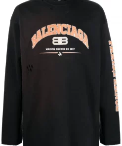 Les dernières pièces Balenciaga reflète l’approche avant-gardiste de la marque, et ce sweat à logo imprimé en est l’exemple parfait. Construite avec une coupe souple, avec des détails effilohés et un bord franc, ce sweat noir décontracté a beaucoup de personnalité.