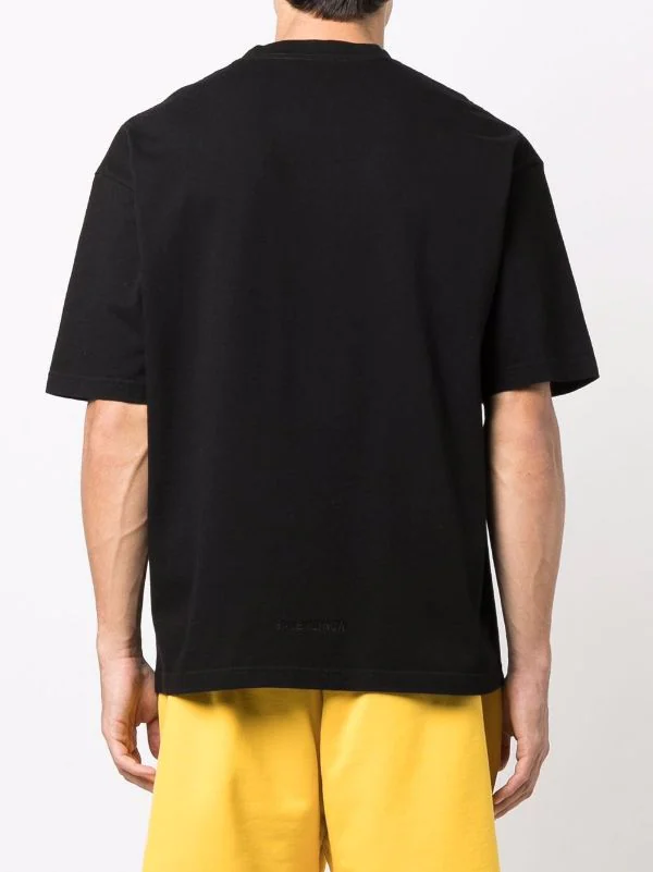 Imprimé graphique, encolure ronde, effet d’épaules descendues, manches courtes, ourlet droit. Couleur : noir. Matière : coton.