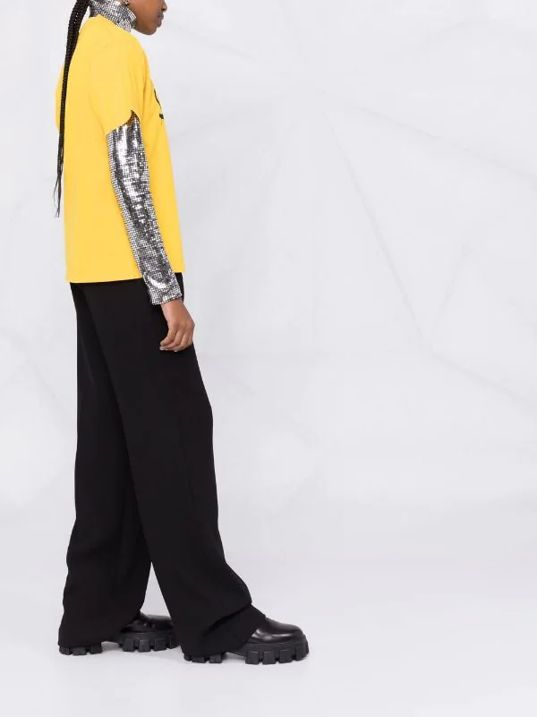 Imprimé graphique, encolure ronde, manches courtes, ourlet droit. Couleur : jaune. Matière : coton.
