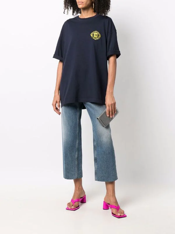 Encolure ronde, logo brodé sur la poitrine, effet d’épaules descendues, manches courtes, ourlet droit. Matière : coton.