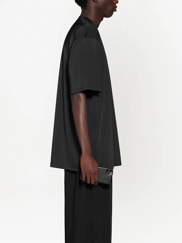 Construction stretch, logo imprimé à la poitrine, encolure ras du cou, manches courtes, effet d’épaules descendues, ourlet droit.