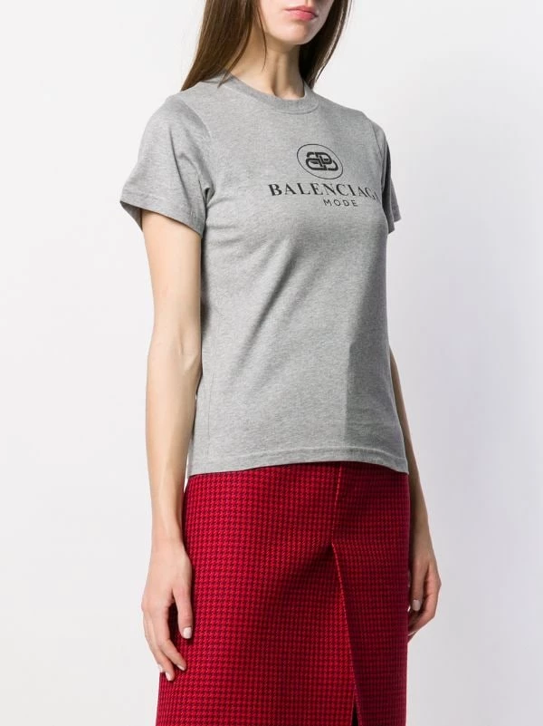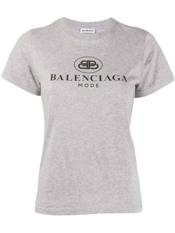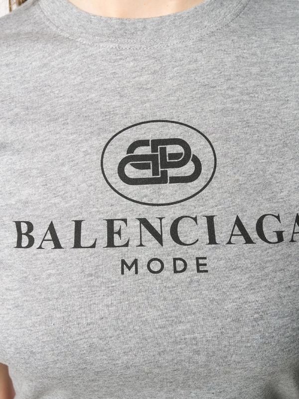 T-Shirt Ajusté à Logo en coton Balenciaga avec encolure ras du cou nervurée et ourlet droit. Couleur : gris.