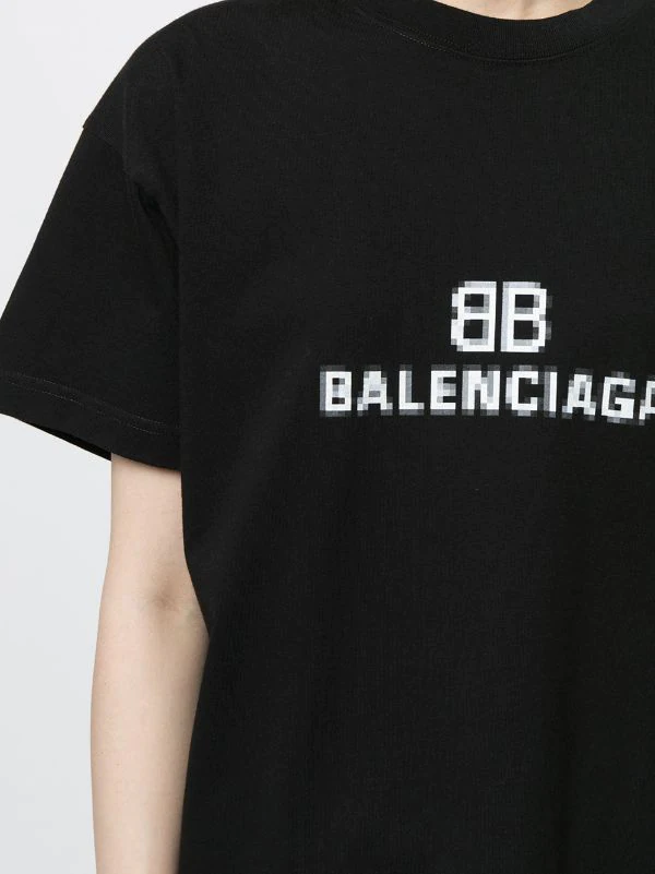 Logo imprimé sur le devant, imprimé pixelisé, encolure ras du cou, manches courtes. Couleur : noir. Matière : coton.
