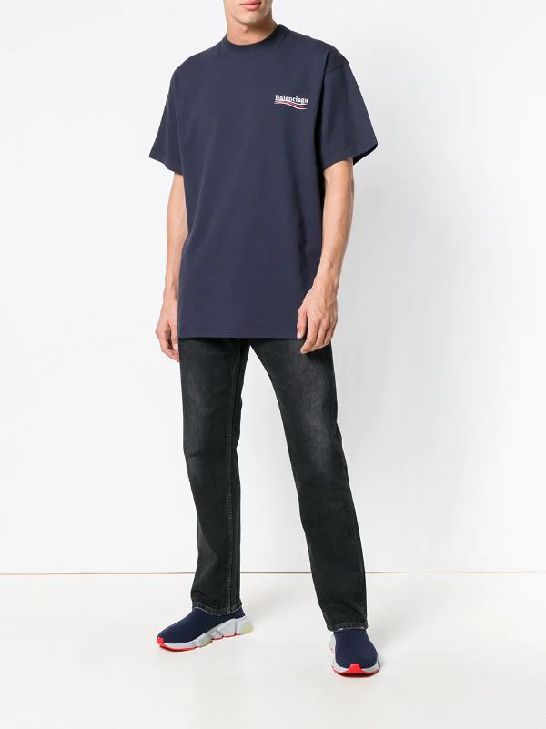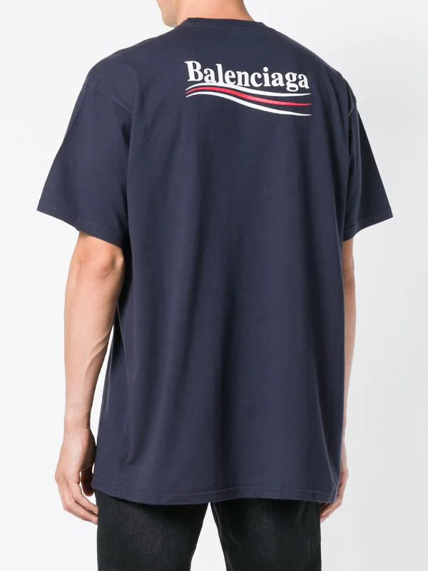 T-Shirt Imprimé en coton Balenciaga avec encolure ronde, manches courtes et imprimé graphique. Couleur: bleu marine.