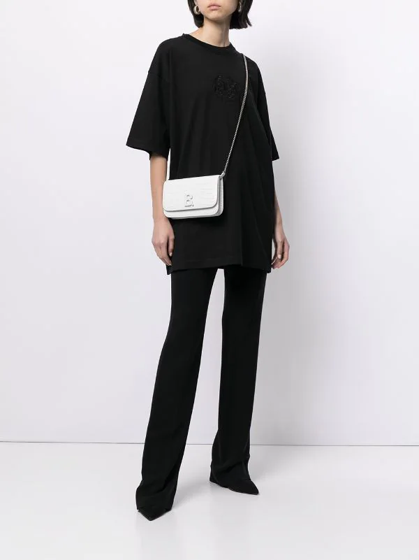 Logo brodé sur le devant, encolure ras du cou, effet d’épaules descendues, manches courtes. Couleur : noir. Matière : coton.