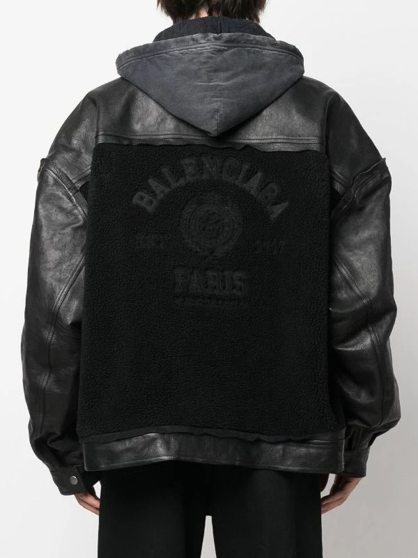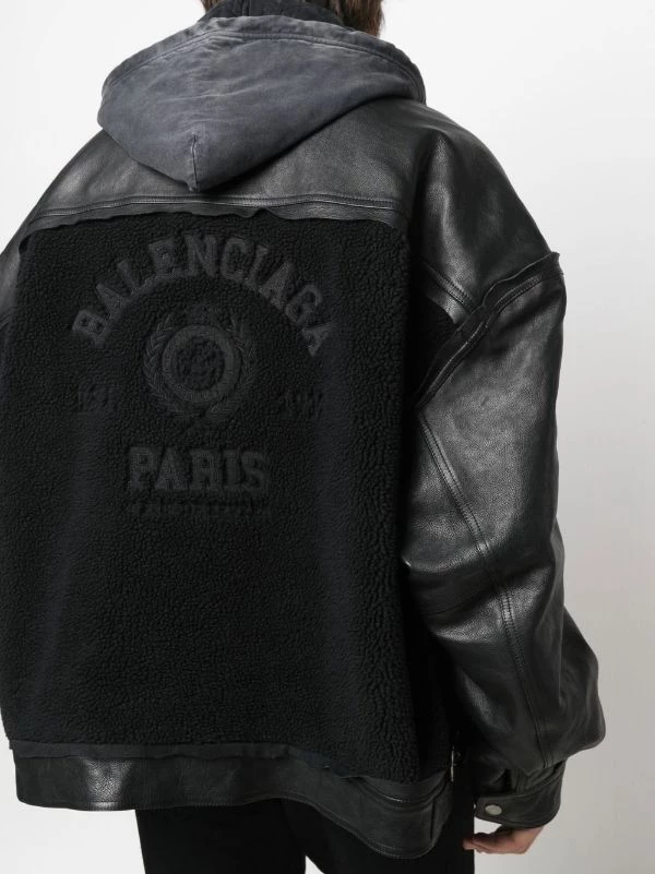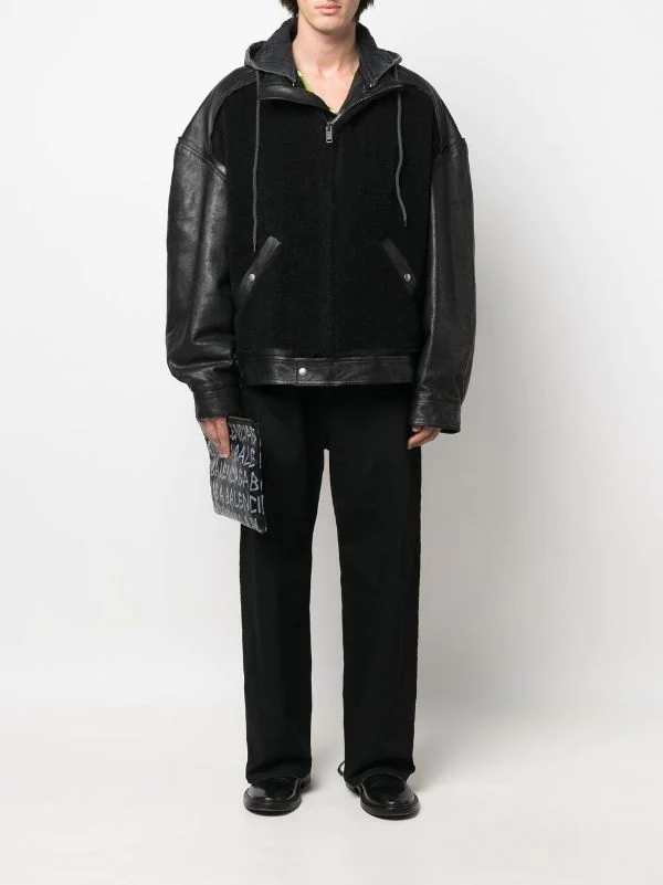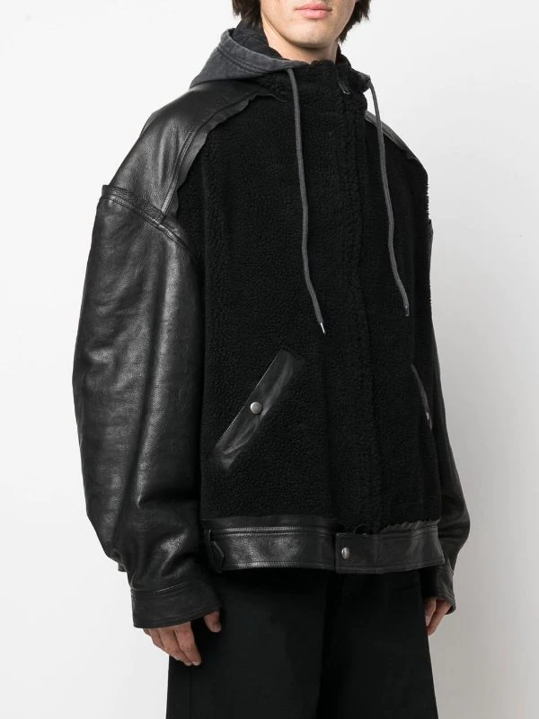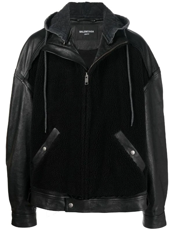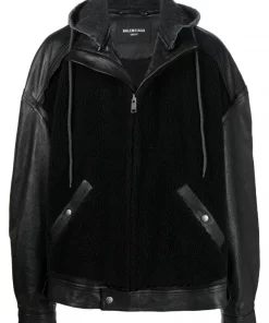 Texture polaire, logo brodé à l’arrière, design patchwork, poches latérales fendues, fermeture zippée devant, capuche à lien de resserrage, manches longues, ourlet droit. Couleur : noir.