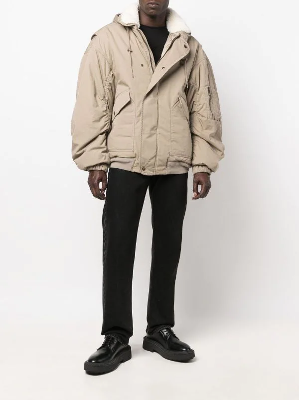 Beige, coton mélangé, capuche à lien de resserrage, fermeture à zip et boutons sur le devant, deux poches latérales à rabat, épaules tombantes, poche zippée sur la manche, manches longues, poignets élastiqués.
