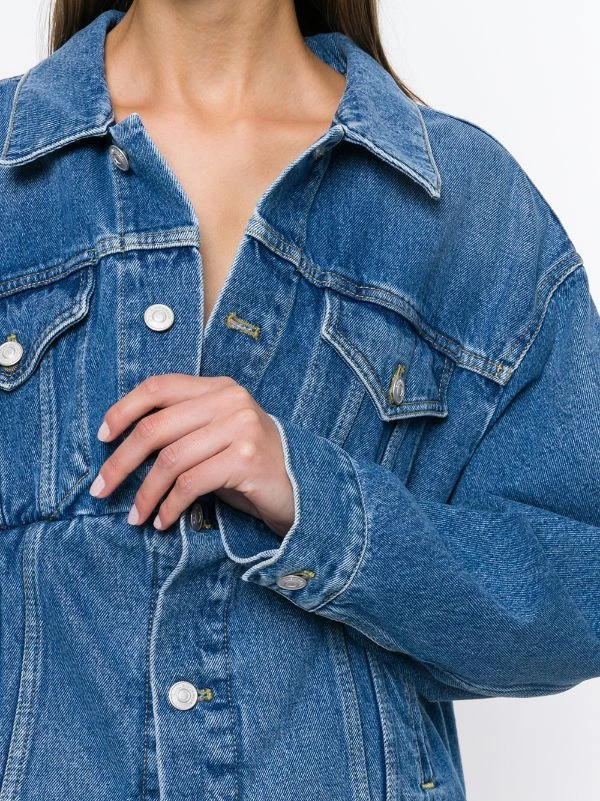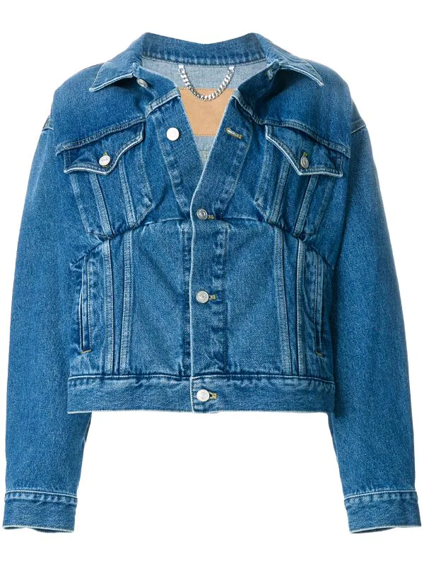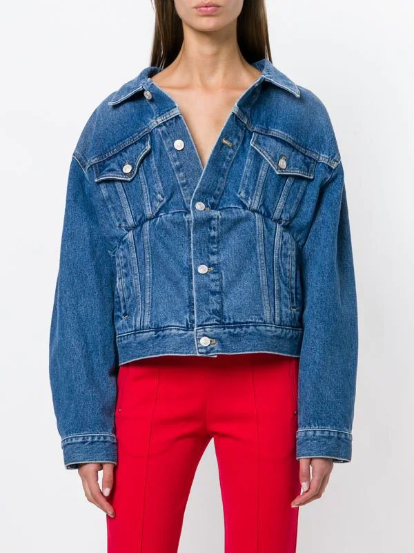 Veste en Jean Swing en coton Balenciaga avec col pointu, manches longues, ourlet asymétrique, détails de coutures et poches poitrine. Couleur: indigo.