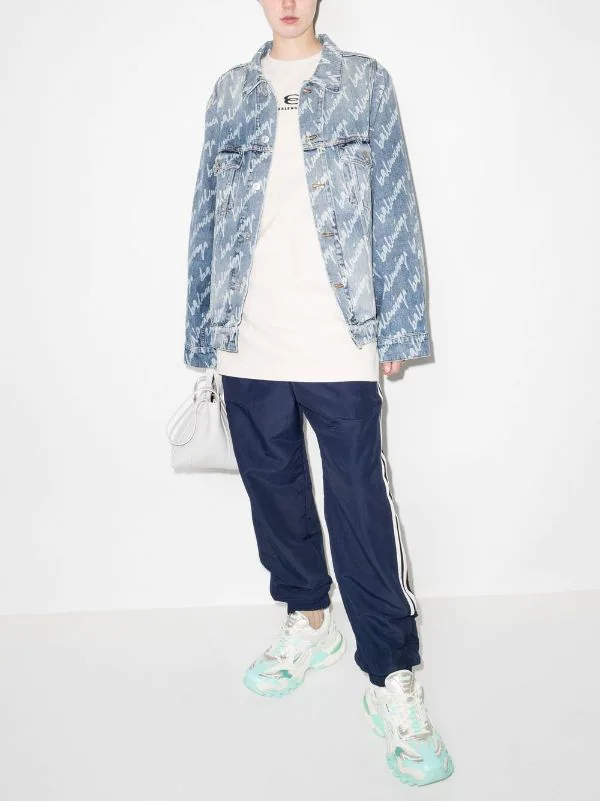 Bleu clair, coton mélangé, imprimé monogrammé, col classique, détails de coutures apparentes, boutonnière sur le devant, poches poitrine à rabat, poches latérales fendues, manches longues, ourlet droit.