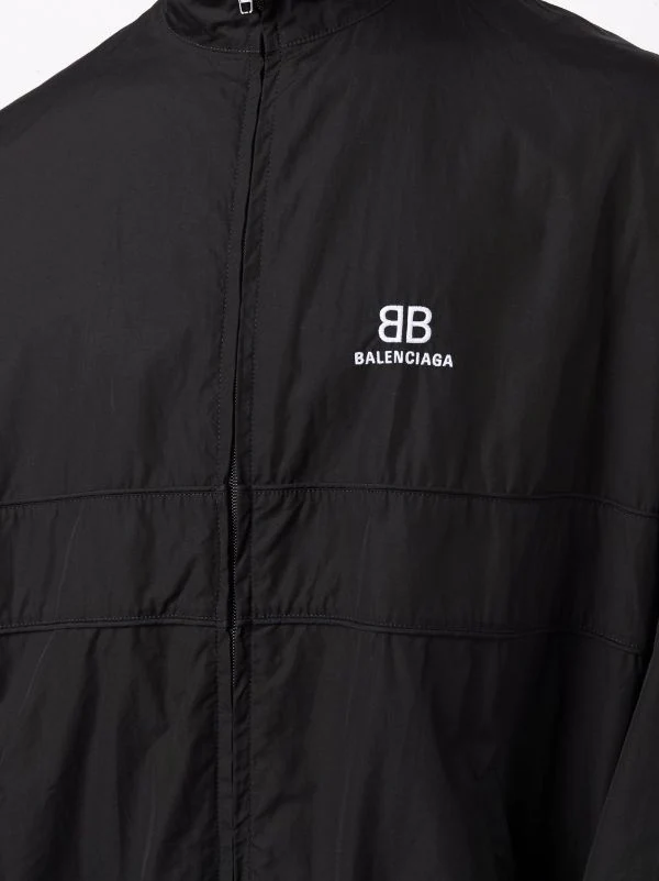 Logo brodé, col cheminée, fermeture zippée devant, manches longues, deux poches latérales fendues. Couleur : noir. Matière : coton.