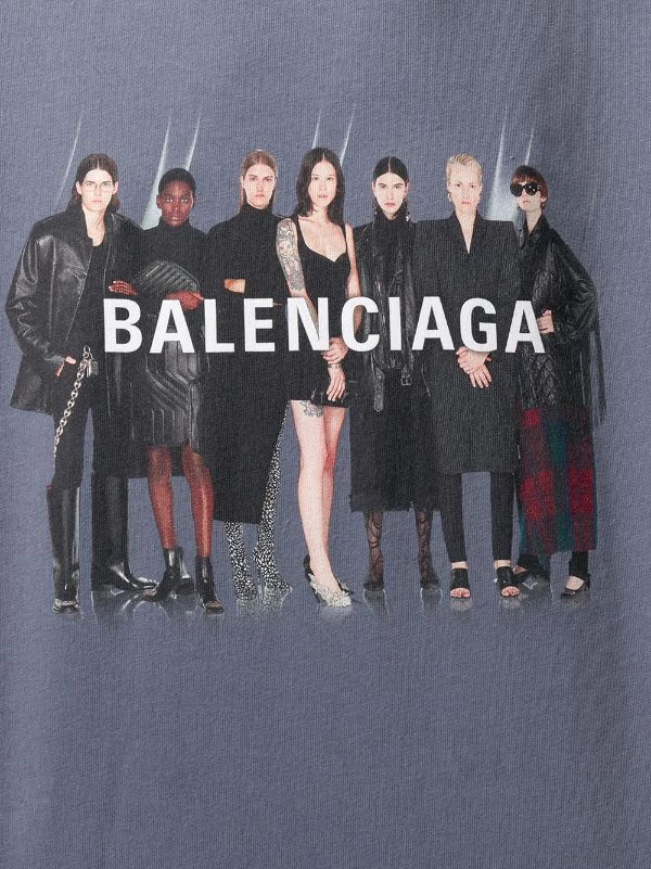 T-Shirt Real Balenciaga en coton Balenciaga avec encolure ronde, manches courtes, logo imprimé et ourlet droit. Couleur : gris.
