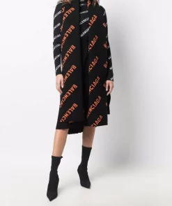 ( Positively Conscious ) Balenciaga écharpe En Maille à Motif Monogrammé 1018 BLACK/ORANGE
